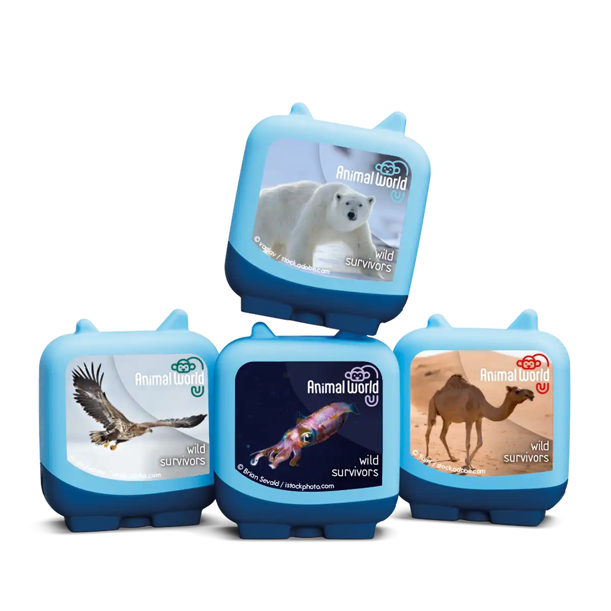 Little explorers, get ready for an animazing adventure! This set of four Clever Pocket Tonies takes young listeners on a global journey to discover the world’s wildest animal survivors.