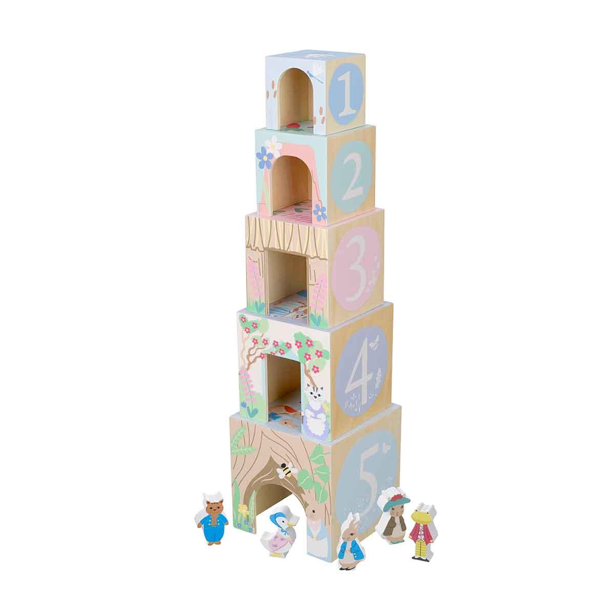 They'll have plenty of fun stacking the five bright coloured and numbered wooden boxes. Each are beautifully decorated in the theme of a Peter Rabbit scene. If that wasn't enough, each cube has space for the included matching character.
